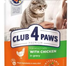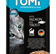Chunks in gravy with salmon and cod; high protein, low fat; no colorings; ideal for sterilized cats; rich in omega-3 for skin and coat health.