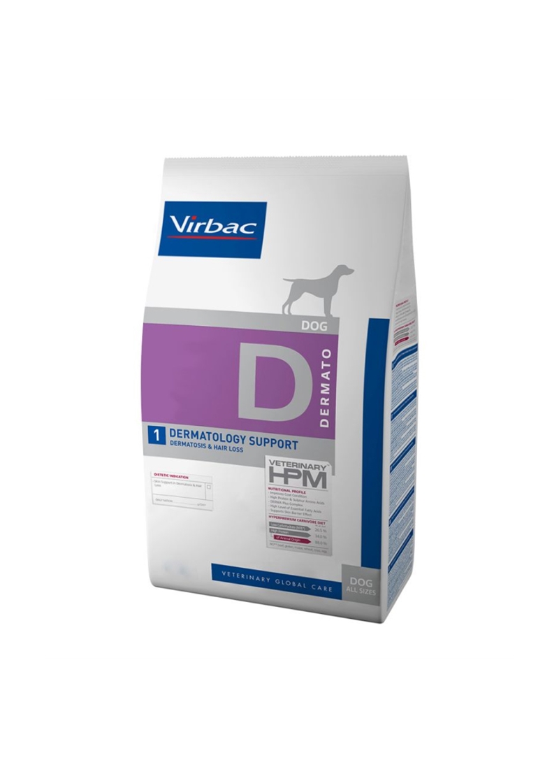 Special diet for dogs with skin inflammation and hair loss; enriched with essential fatty acids.