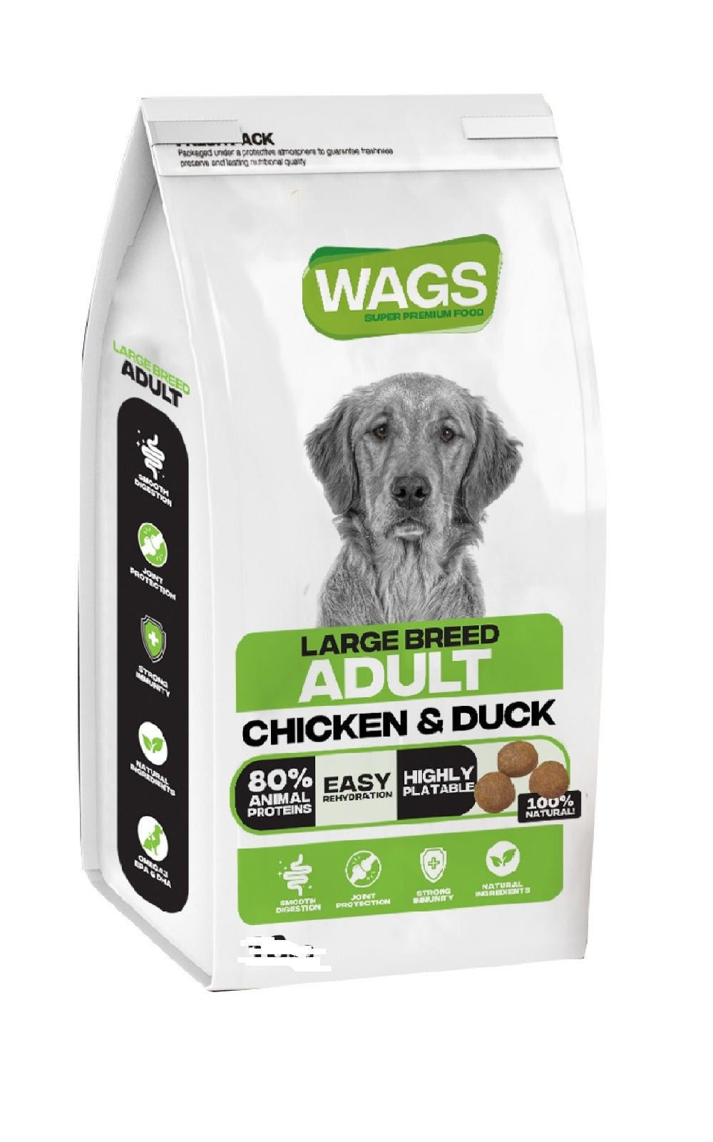 Large-breed puppy food with chicken; enriched with calcium for bone health.